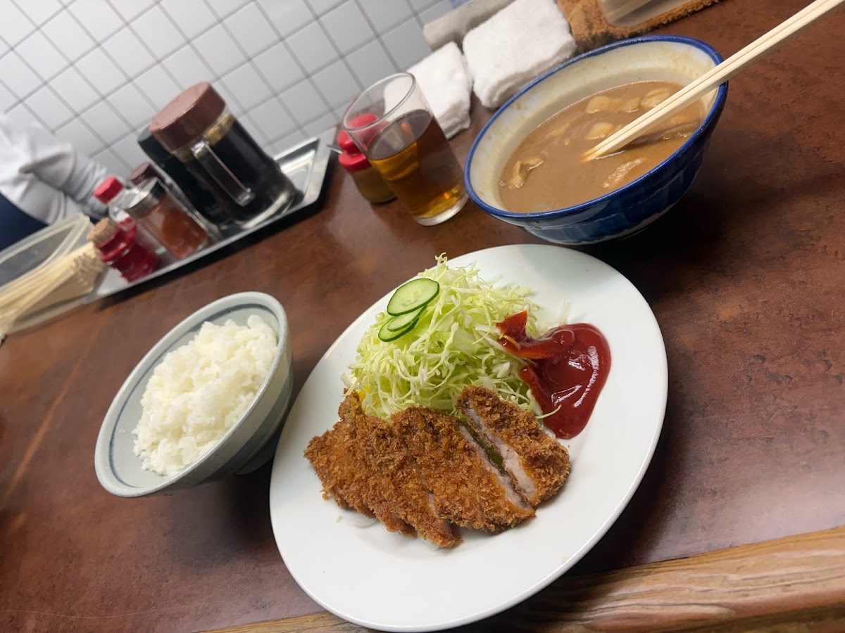 One of the restaurant's standout offerings is their signature ヘレカツset. This dish features a perfectly fried, tender pork tenderloin cutlet served with a side of rice and salad, making it a popular choice for those looking for a filling yet satisfying meal. Another fan favorite is the オムライスケチャップ多め, an omelet filled with flavorful ketchup rice that adds a nostalgic touch to your meal. If you're in the mood for a hearty rice-based dish, the ヤキメシset is a must-try. This savory fried rice, served with crispy pork cutlets, is a delicious balance of flavors that will surely leave you satisfied.